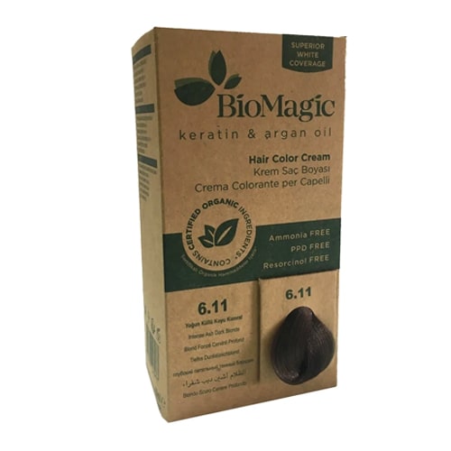 Biomagic Hair Color No: 6.11 Intense Ashy Dark Auburn, is a color that contains intense ashy pigment. Getting a cool undertone glow to your dark hair will increase the attractiveness of your hair.