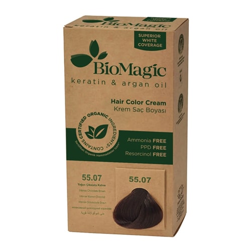 Biomagic Hair Color No: 55.07 Chocolate Brown, if you are under the spell of dark hair. It is also an ideal hair dye for a heartwarming chocolate color breeze. You can have this long-lasting color.