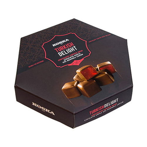 Order now and taste this unique flavor of Koska Chocolate Coated Turkish Delight with Rose Flavored.