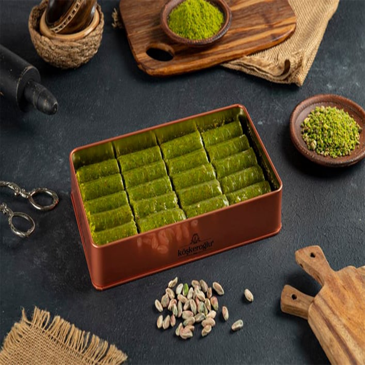Koskeroglu Pistachio Wrap Baklava Metal Box 750 gr (26.46oz)