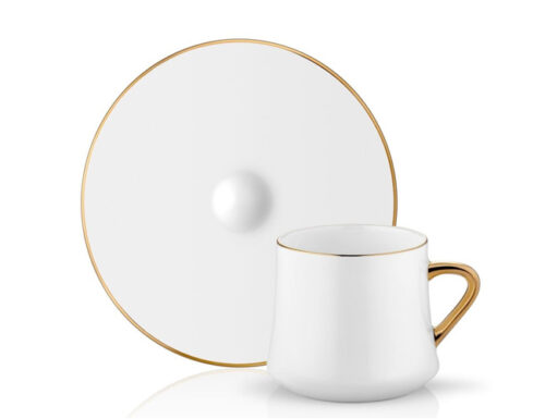 Sufi Tea / Coffee Cup Set has six kinds options; as Gold Border, Platin Border, Ikat Anthracite, Ottoman Gold, Seljuk Gold and Checkers Black White.