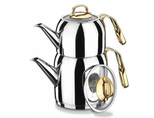 Turkish Tea Pot Set, Goldia has ergonomic handle and polished exterior surfaces that retain its brilliance.